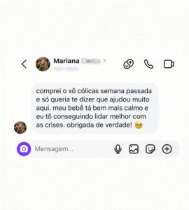 Mas garanto que você terá acesso aos exatos segredos que eu e muitas mães usamos para acabar com as cólicas e transformar momentos de choro em horas de calma e conexão com o bebê.